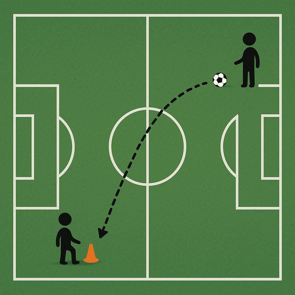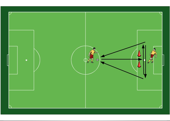 - ضع القمع على بعد 5 ياردات من خط منطقة الجزاء (حوالي 22.6 ياردة من المرمى).