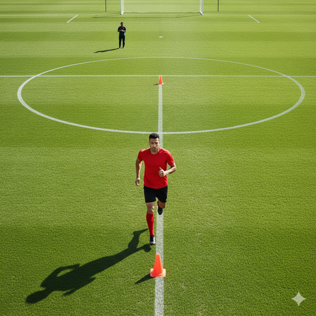 - ضع القمعين على مسافة 20–25 خطوة (حوالي 12 متر إذا كان طولك 150 سم).
